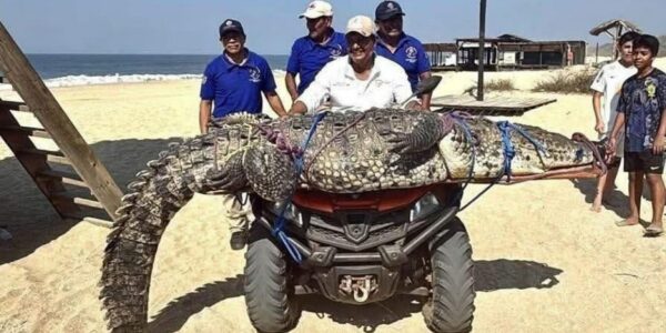 Capturan y reubican a cocodrilo de tres metros en Playa Bacocho, Oaxaca
