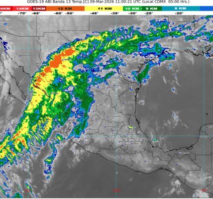 Finalmente, una circulación anticiclónica en niveles medios de la atmósfera sobre el occidente de México, mantendrá el ascenso gradual de las temperaturas diurnas en el occidente, centro y sur del país.