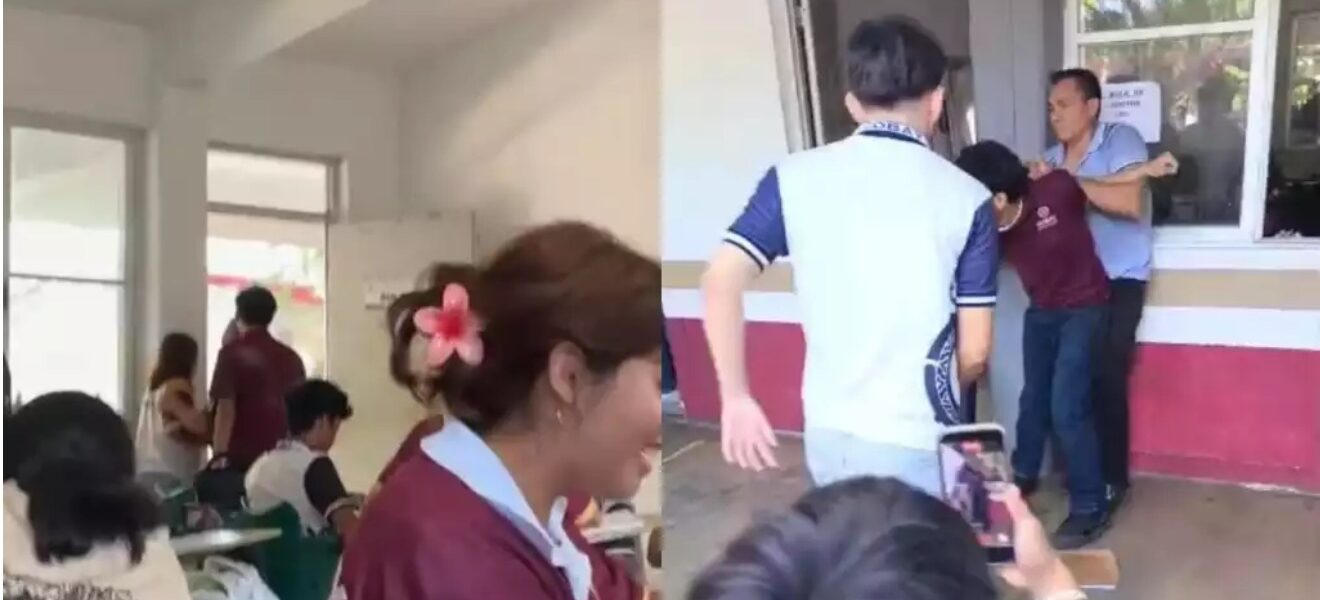 De acuerdo con testigos, la agresión se originó tras una discusión motivada aparentemente por celos: la joven —su “novia”— fue abofeteada sin mediar palabra. Cuando un docente intentó separarlos, el alumno reaccionó violentamente y lo golpeó con una patada.