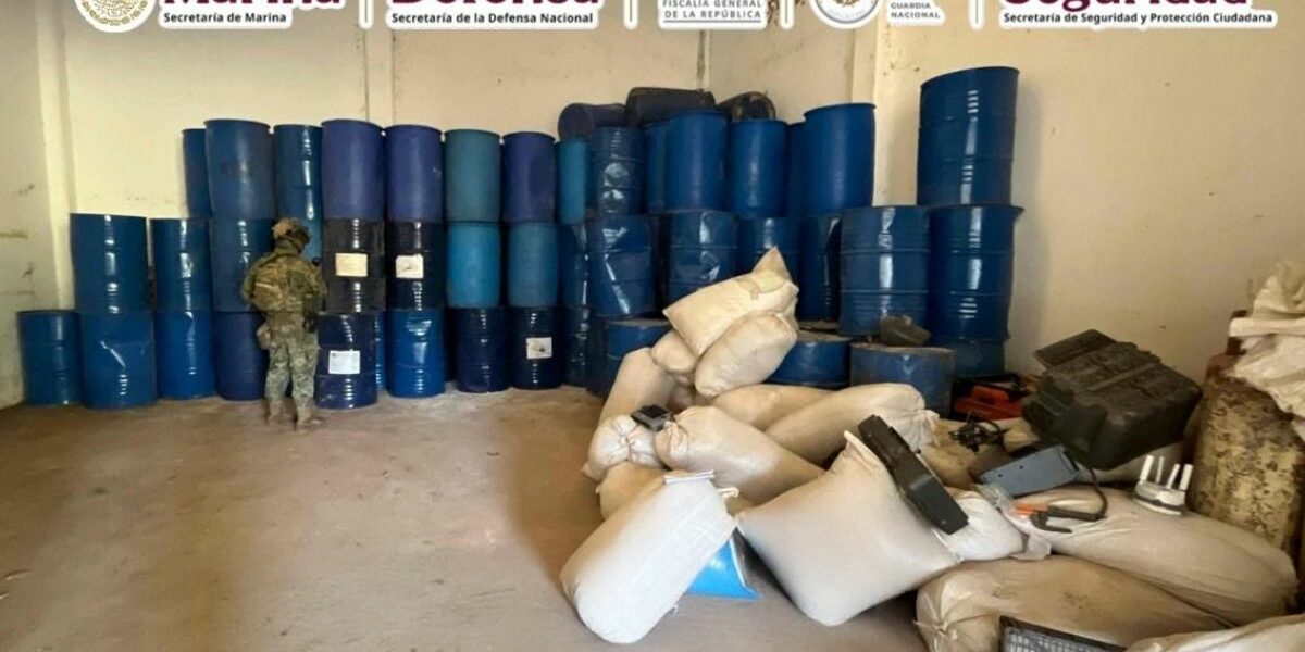 🔸 Fuerzas federales aseguraron una bodega y desmantelaron un narcolaboratorio en Guerrero con capacidad para la producción de tres tipos de drogas