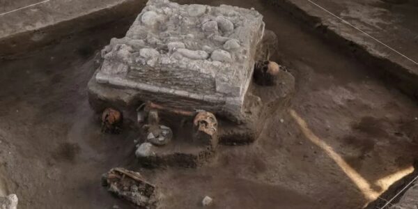 Descubren altar tolteca con restos humanos en obras del tren México-Querétaro