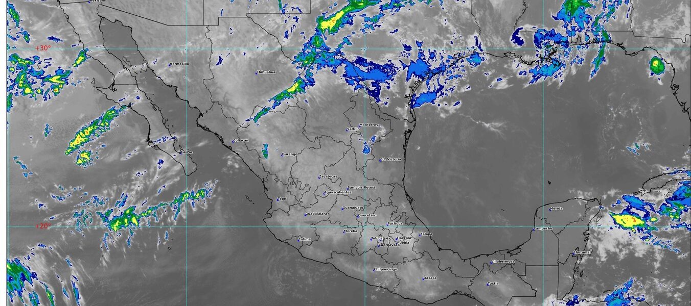 Una vaguada en niveles altos de la atmósfera, en interacción con la corriente en chorro subtropical, propiciará chubascos y lluvias puntuales fuertes con descargas eléctricas en el sureste mexicano, incluida la península de Yucatán.